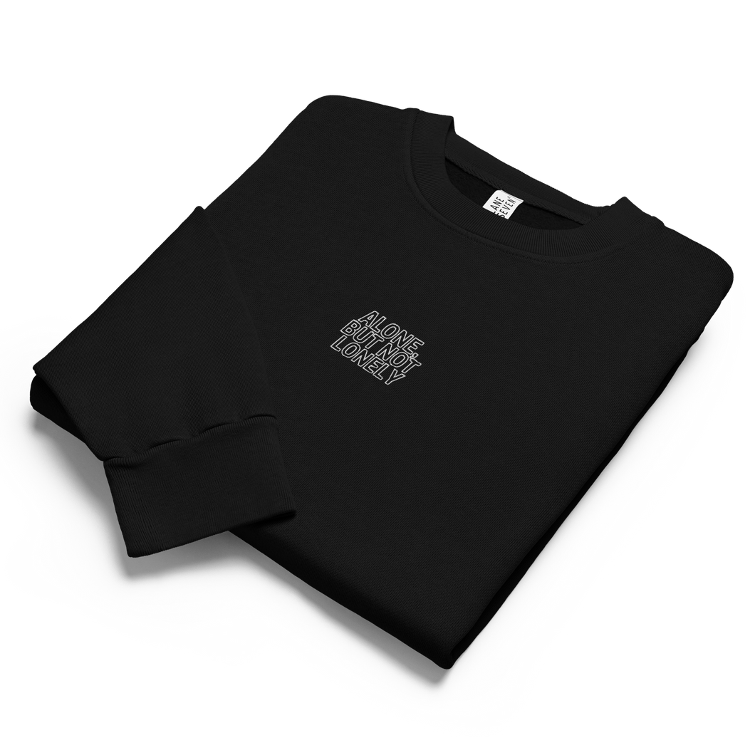 Inspired by the 'Alone, But Not Lonely' EP, this sweatshirt is a reminder that solitude can be full, not empty. It represents the quiet confidence that comes from being at peace with yourself, finding comfort in your own presence while remaining open to connection. It’s about learning to rest in stillness, letting moments of distance become spaces for reflection and growth. Soft, comforting, and intentionally minimal, this one is for those who know that being alone doesn’t mean lacking—it means being whole. Designed for everyday comfort, it’s perfect for late-night drives, journaling, or simply enjoying moments of calm and clarity.
